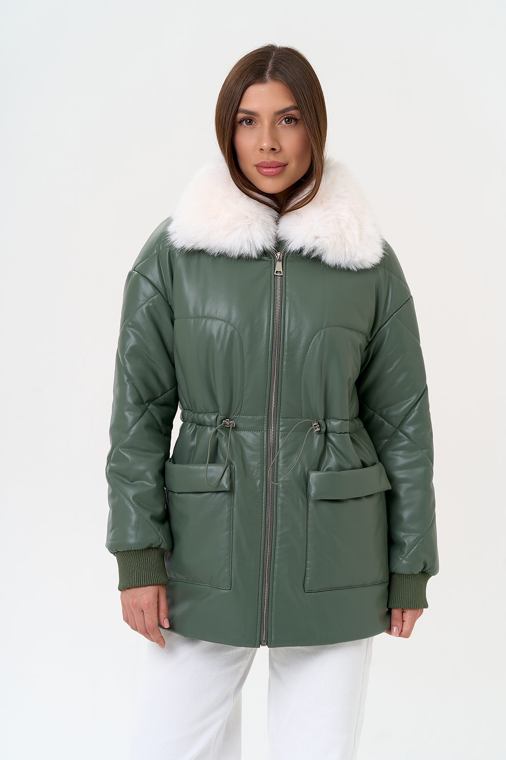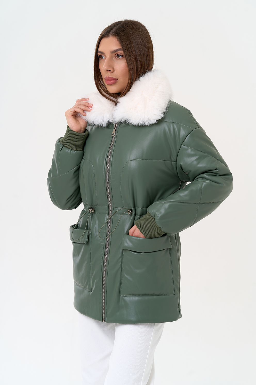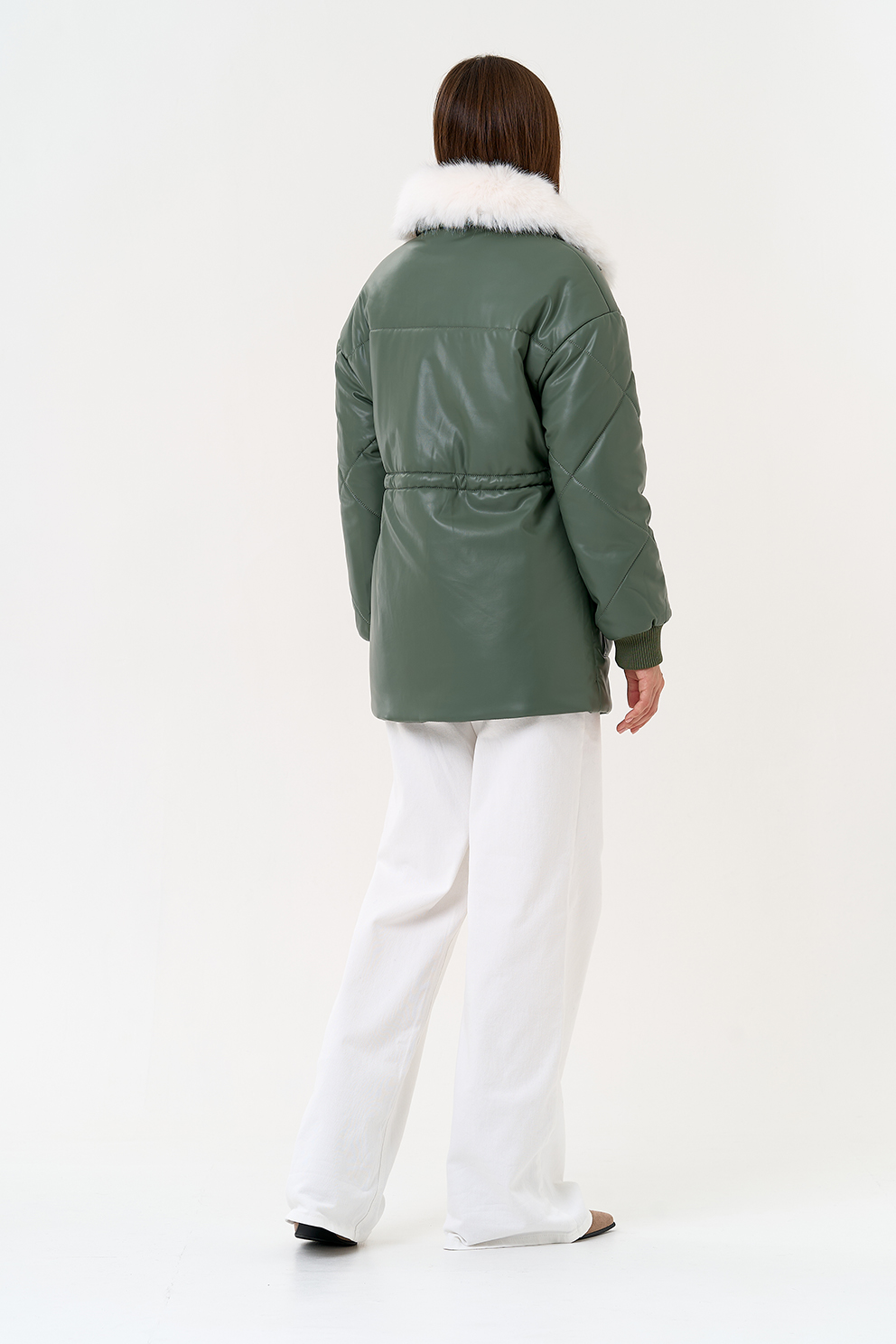 Отделка воротника - съемный эко мех, цвет белый